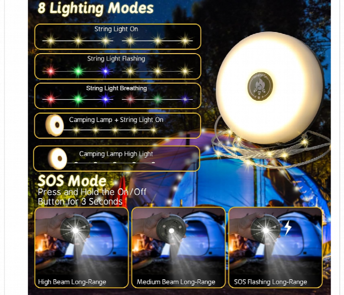 🔦 Çok Fonksiyonlu Kullanım: Kamp lambası, el feneri ve acil durum ışığı olarak kullanılabilir.