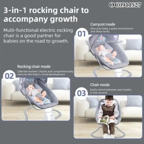 Sallanan Müzikli Bebek Yatağı/Puseti ile bebeğinizin huzur içinde uyumasını sağlayın! Bluetooth bağlantısı, melodi seçenekleri, zamanlayıcı ve uzaktan kumandayla ebeveynliği kolaylaştıran bu şık bebek yatağı.